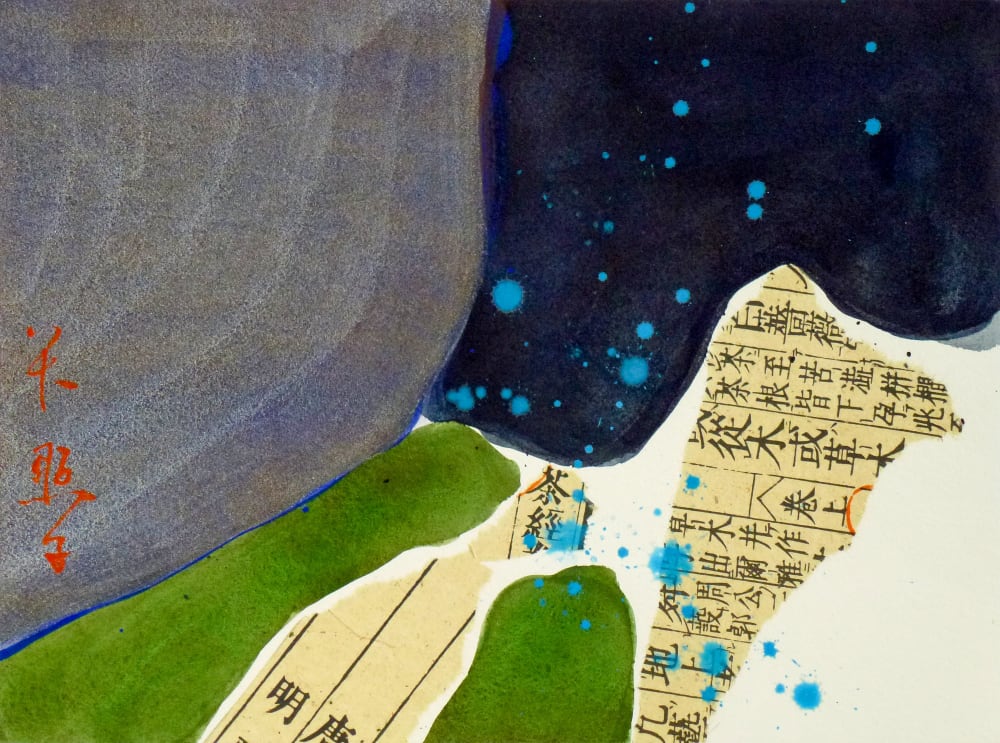Ohne Titel, 1980Egg tempera with metallic colour and collage on paper10 3/8 x 14 1/8 in